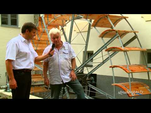 Einen Wunschtraum erfüllte sich Kommerzialrat Ernst Grillenberger mit dem neuen Mühlenrad im Kulturzentrum Sturmmühle in Saxen.
