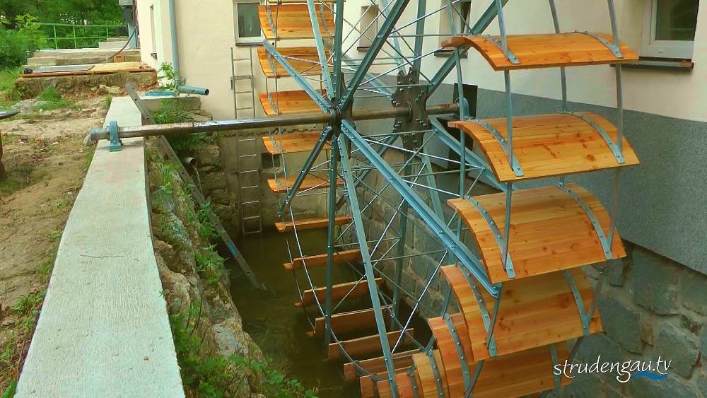 Einen Wunschtraum erfüllte sich Kommerzialrat Ernst Grillenberger mit dem neuen Mühlenrad im Kulturzentrum Sturmmühle in Saxen.